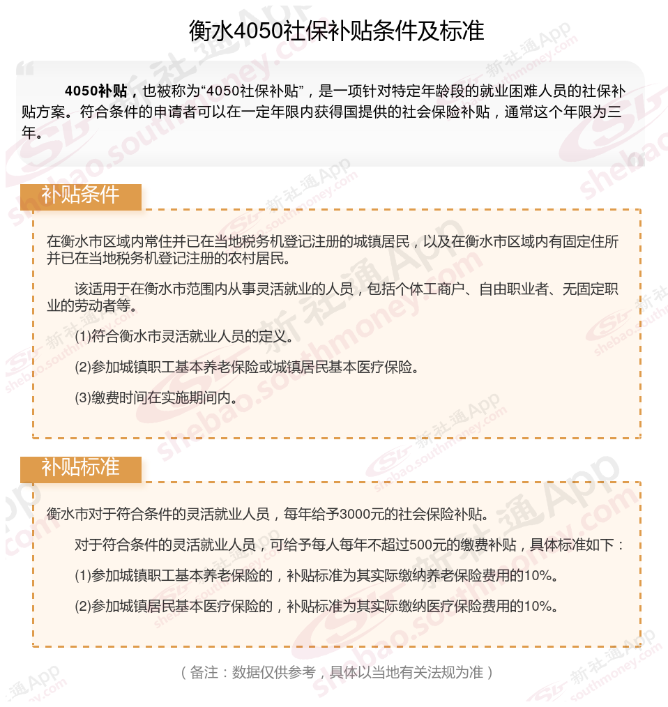 一、衡水4050社保补贴标准及条件2025年最新消息