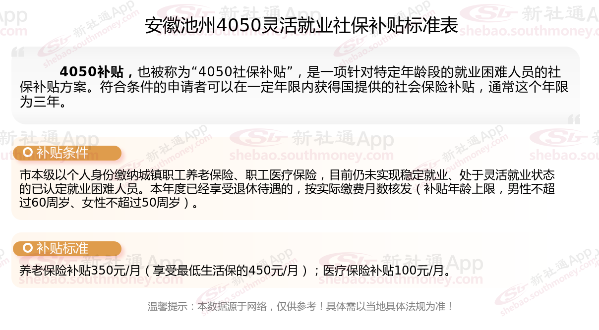 一、2023-2024年安徽池州4050社保补贴标准及条件是多少?