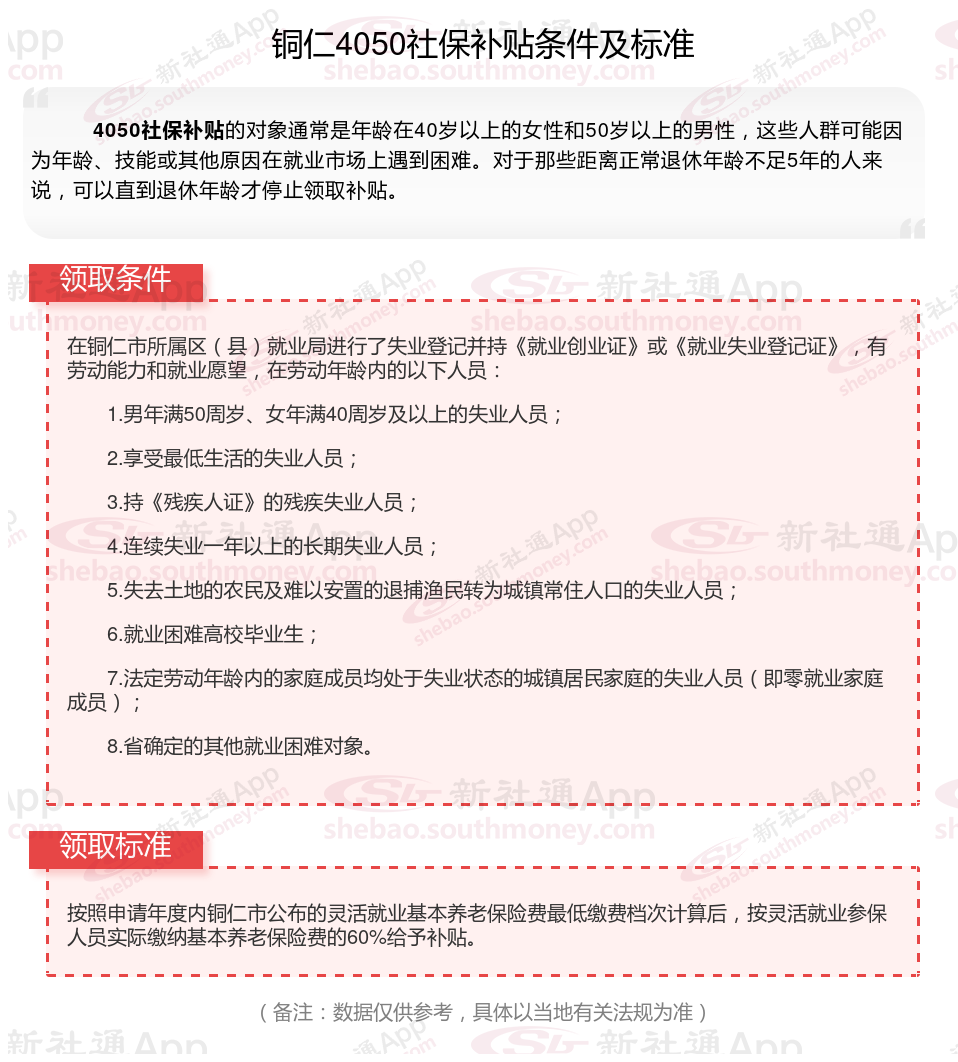 二、2025年铜仁4050社保补贴标准及条件,最新如下:
