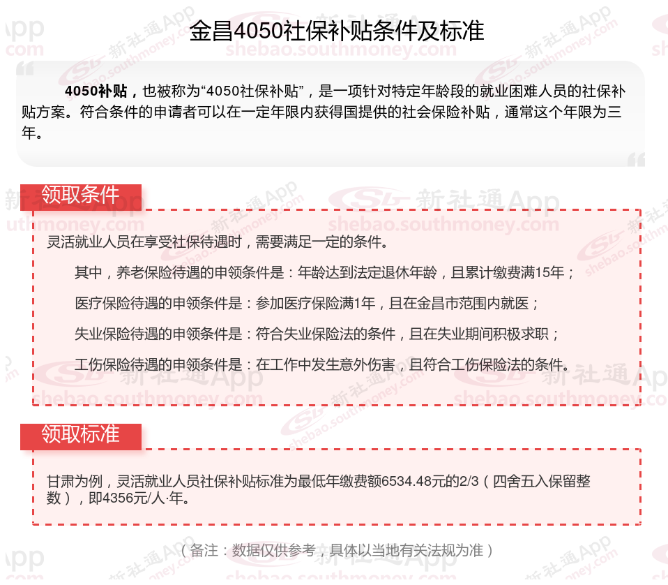 一、金昌4050社保补贴标准及条件2025年最新消息