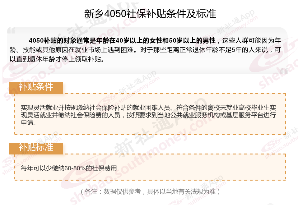 以上就是新乡4050灵活就业社保补贴的相关内容,欢迎关注新社通/下载新社通APP了解更多五险一金专业资讯。