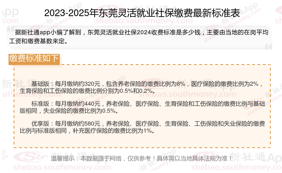 据新社通app数据显示,东莞灵活就业养老保险缴费基数2024-2025年最新标准如下: