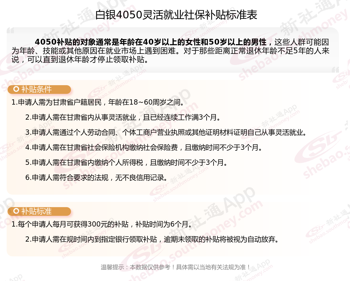 二、白银灵活就业4050社保补贴标准2025年(4050社保条件是什么)