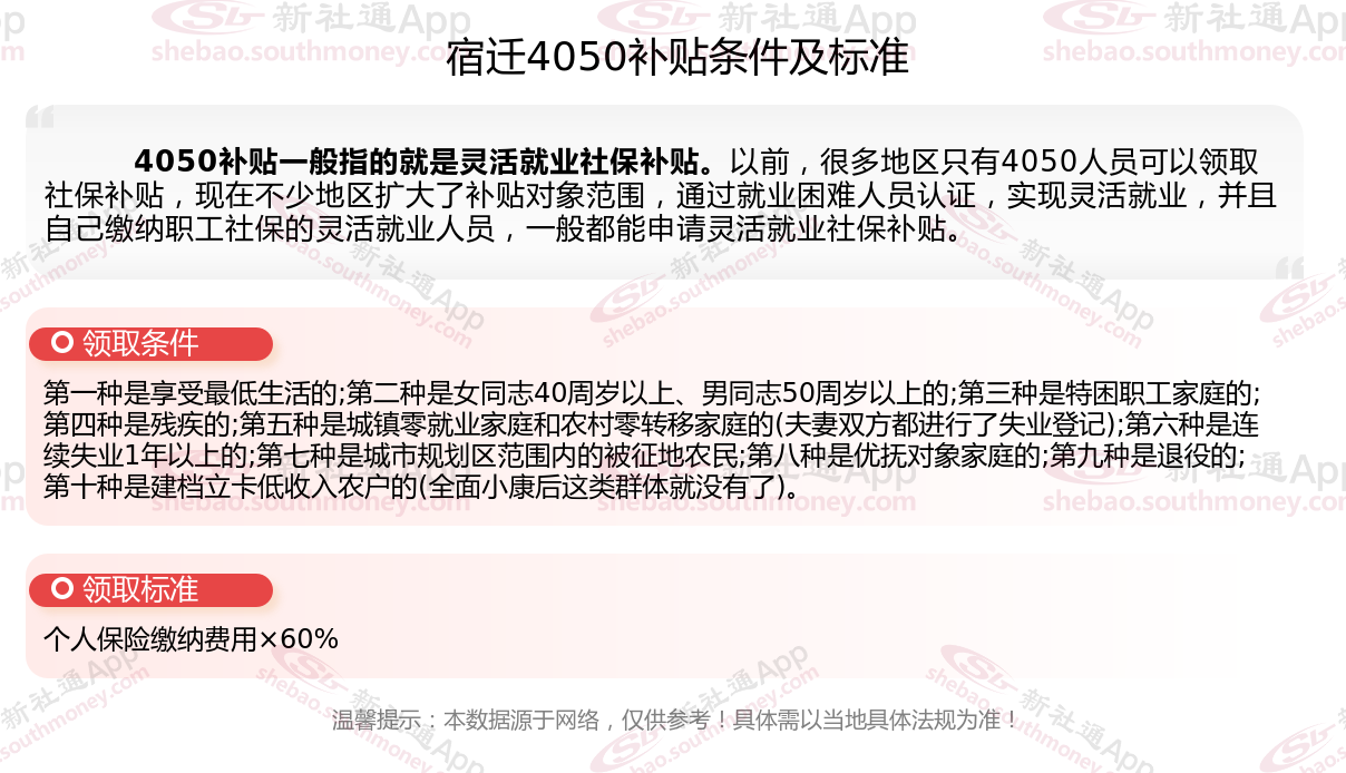 二、宿迁4050社保补贴新规2025年最新标准,2025年宿迁4050社保补贴条件是什么?