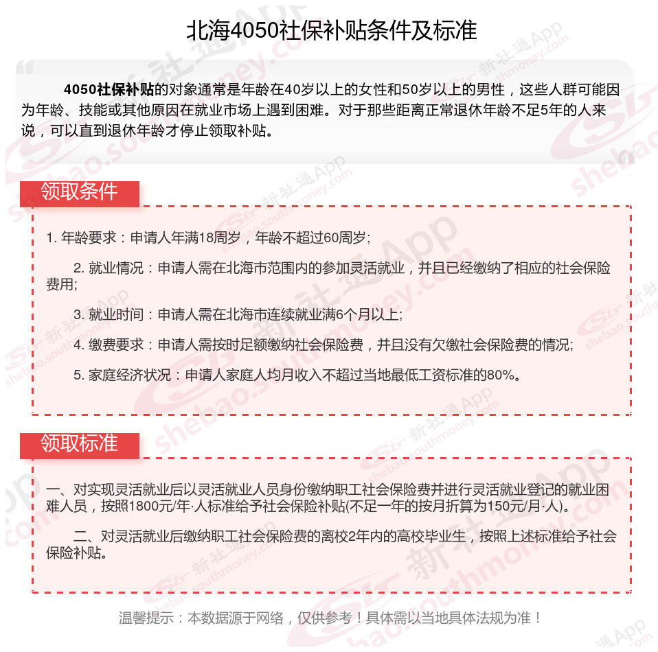 二、2025年北海4050社保补贴标准及条件,最新如下: