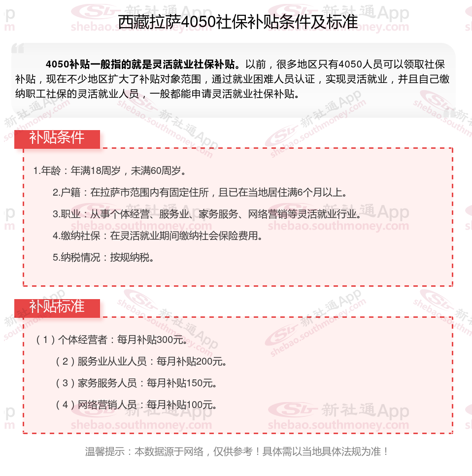 以上就是西藏拉萨4050灵活就业社保补贴的相关内容,欢迎关注新社通/下载新社通APP了解更多五险一金专业资讯。