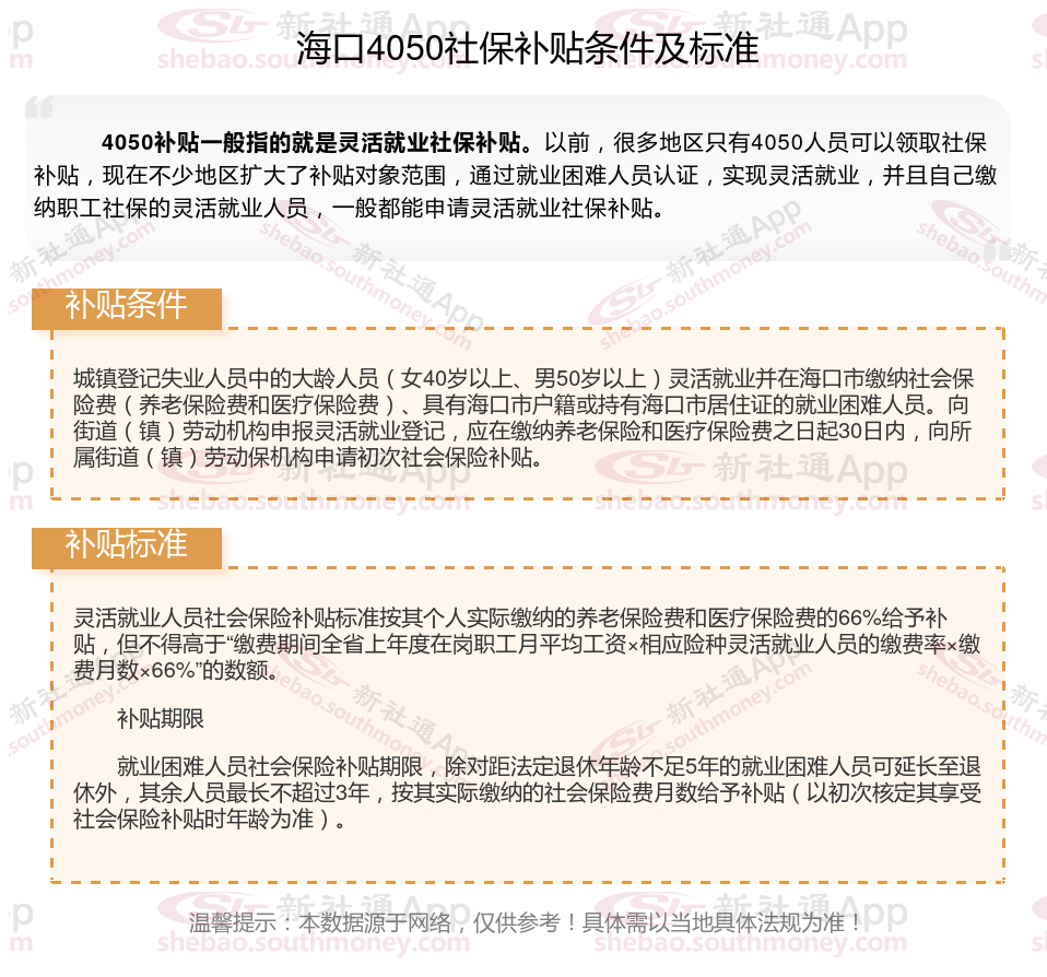 二、2025年海口4050社保补贴标准,最新领取条件来了