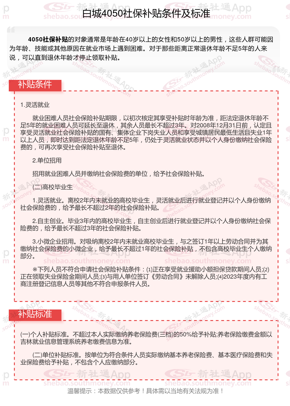 二、白城4050社保补贴标准及条件4050社保补贴,最新如下