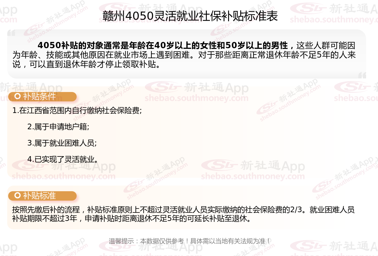一、2025年赣州4050社保补贴标准及条件是多少?