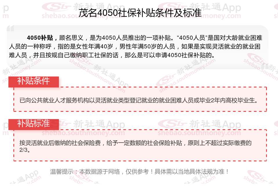 以上就是茂名4050灵活就业社保补贴的相关内容,欢迎关注新社通/下载新社通APP了解更多五险一金专业资讯。