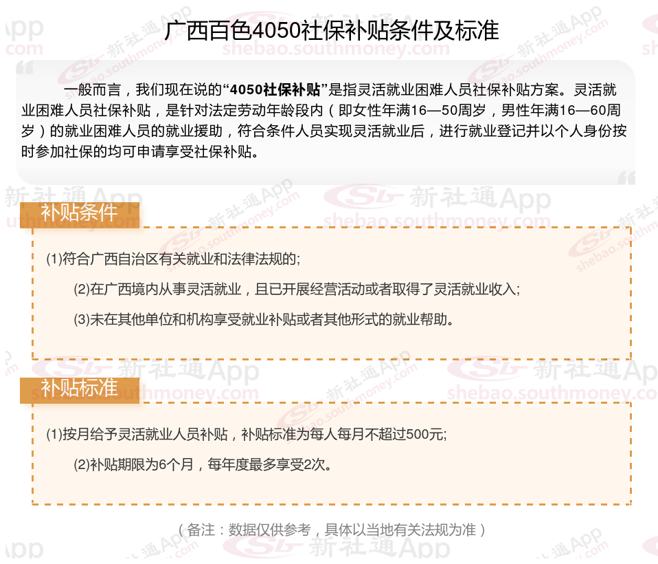 以上就是广西百色4050灵活就业社保补贴的相关内容,欢迎关注新社通/下载新社通APP了解更多五险一金专业资讯。