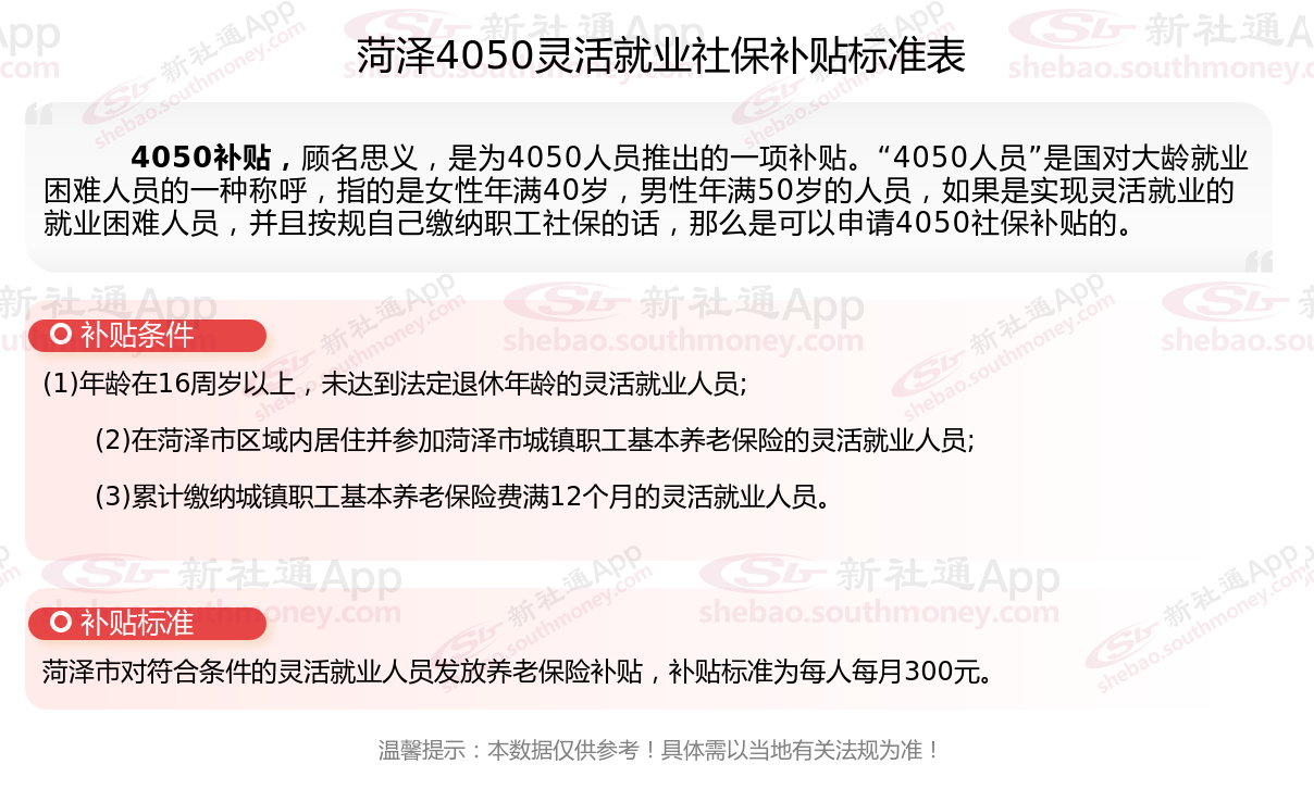 一、2025年菏泽灵活就业4050社保补贴标准是多少?申请条件是什么?