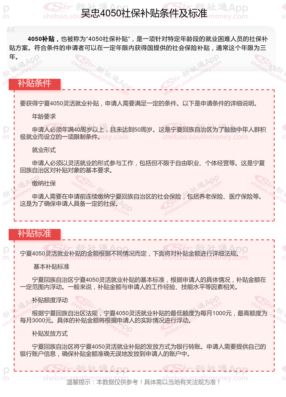 二、2025年吴忠4050社保补贴标准及条件