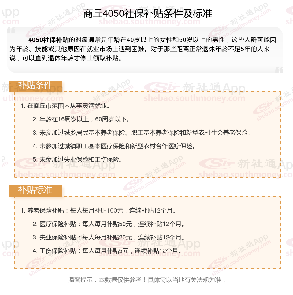 2025商丘4050补贴主要针对的是年龄在40岁以上的女性和50岁以上的男性,这些人群通常因为年龄较大而面临就业困难。