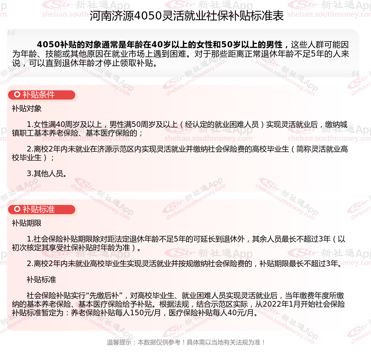 二、2025年河南济源4050社保补贴标准及条件(4050社保补贴多少钱?)