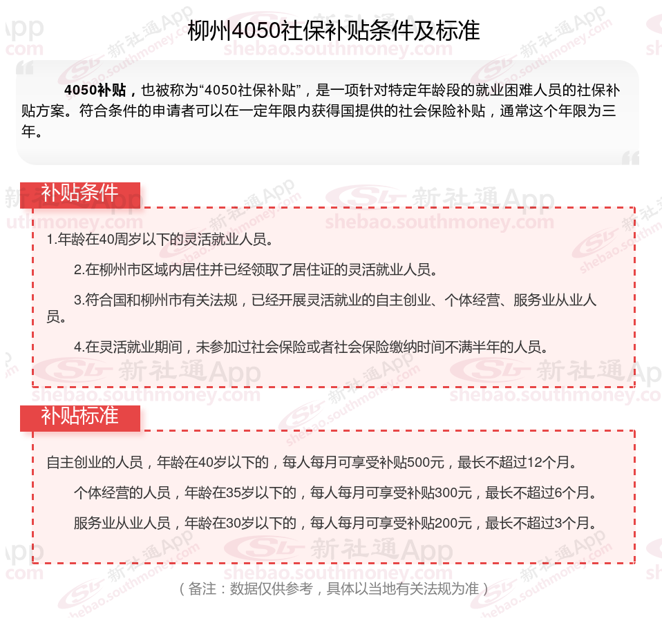 以上就是柳州4050灵活就业困难人员社保补贴的相关内容,欢迎关注新社通/下载新社通APP了解更多五险一金专业资讯。