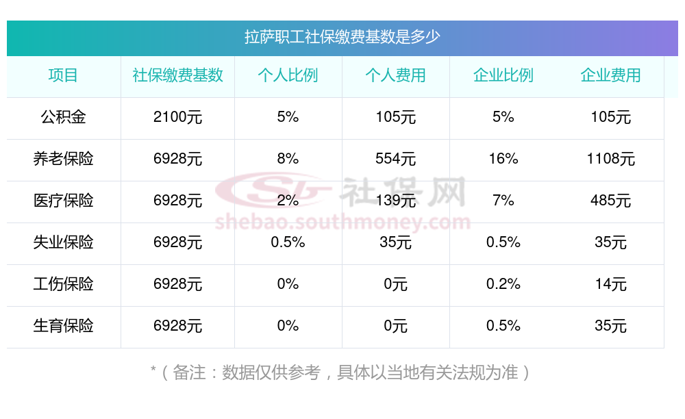 2025年拉萨社保缴费多少钱?下表是2023-2024年拉萨社保费用明细参考,新社通app-社保缴费查询工具提供的最新数据如下: