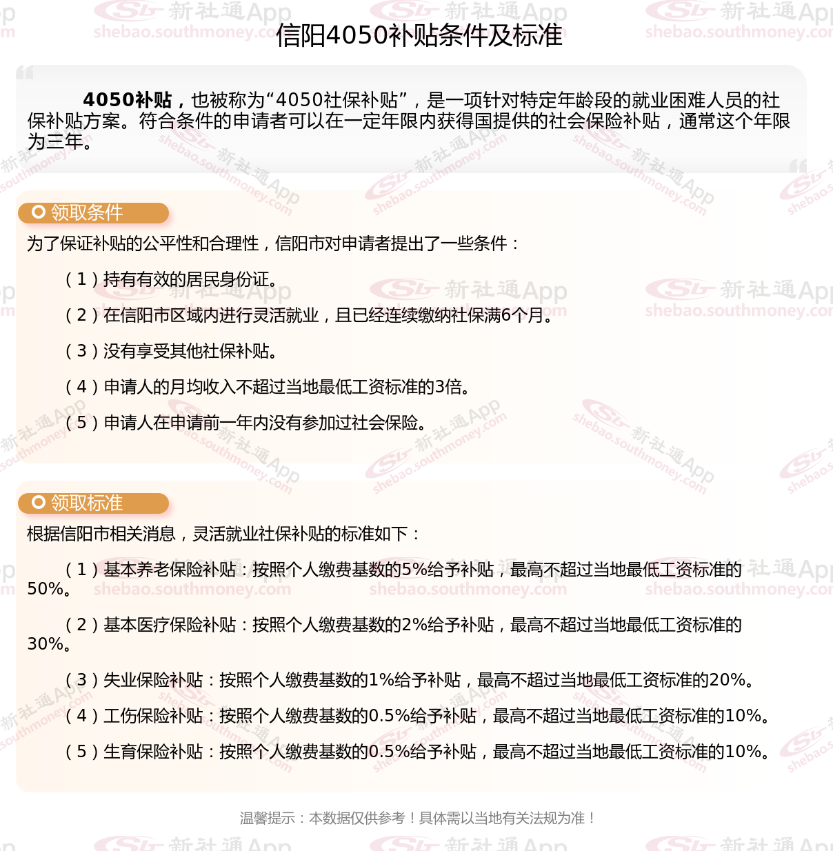 2025信阳灵活就业4050社保补贴是一项面向特定年龄段的就业困难人群的社会保险补贴。