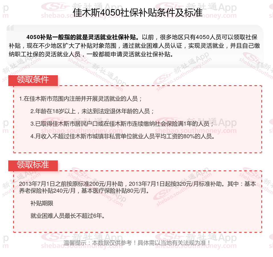 二、佳木斯4050社保补贴标准及条件(2025年最新)