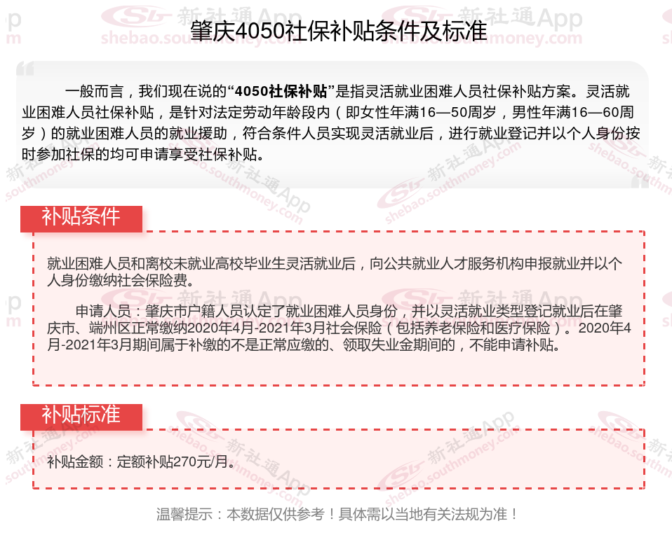 二、肇庆4050社保补贴标准及条件4050社保补贴,最新如下