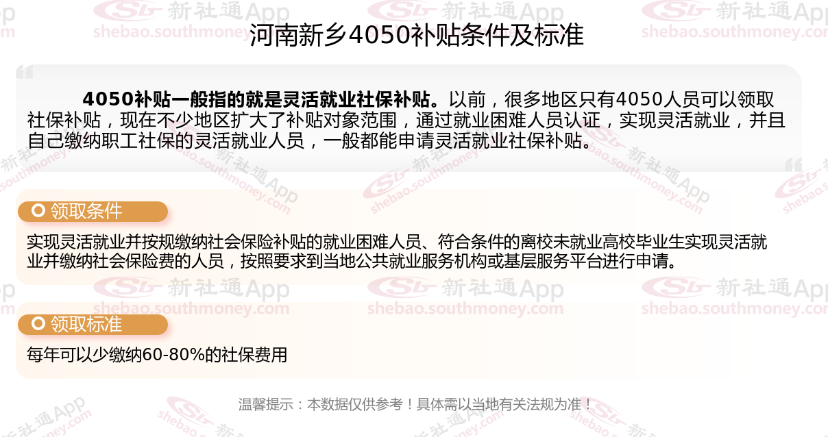 以上就是河南新乡4050灵活就业社保补贴的相关内容,欢迎关注新社通/下载新社通APP了解更多五险一金专业资讯。