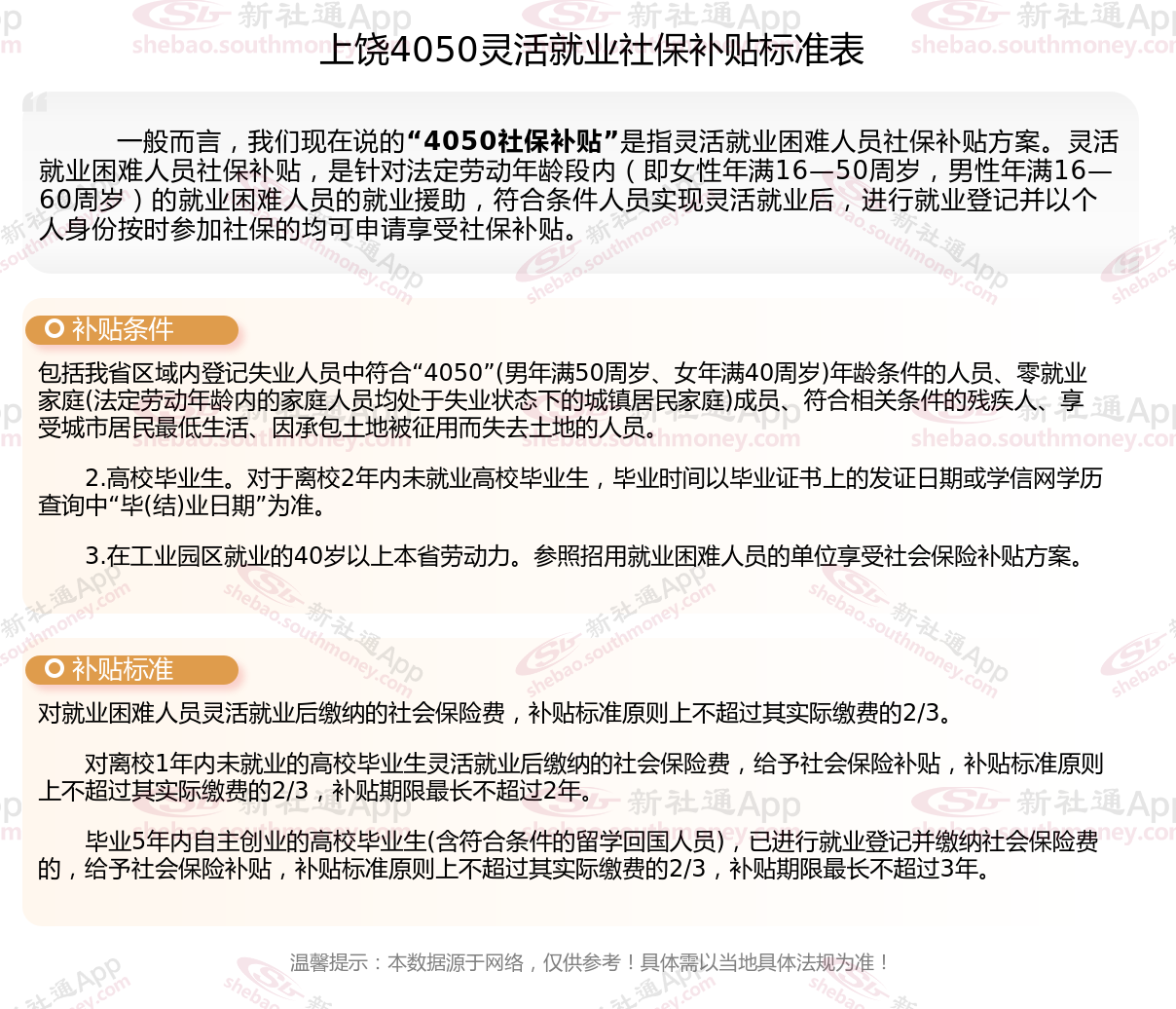 以上就是上饶4050灵活就业社保补贴的相关内容,欢迎关注新社通/下载新社通APP了解更多五险一金专业资讯。