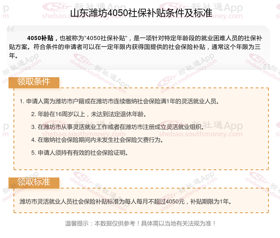 2025山东潍坊4050补贴主要针对的是年龄在40岁以上的女性和50岁以上的男性,这些人群通常因为年龄较大而面临就业困难。