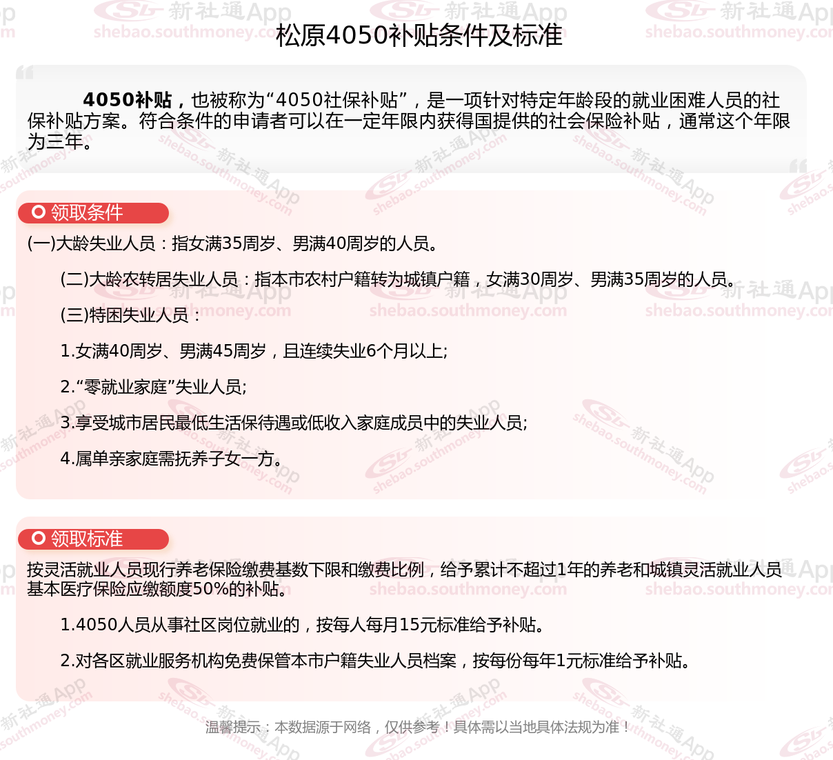 二、2025年松原4050社保补贴标准(松原4050灵活就业人员补贴标准是多少钱?松原2025年4050补贴新规能领多少钱?)