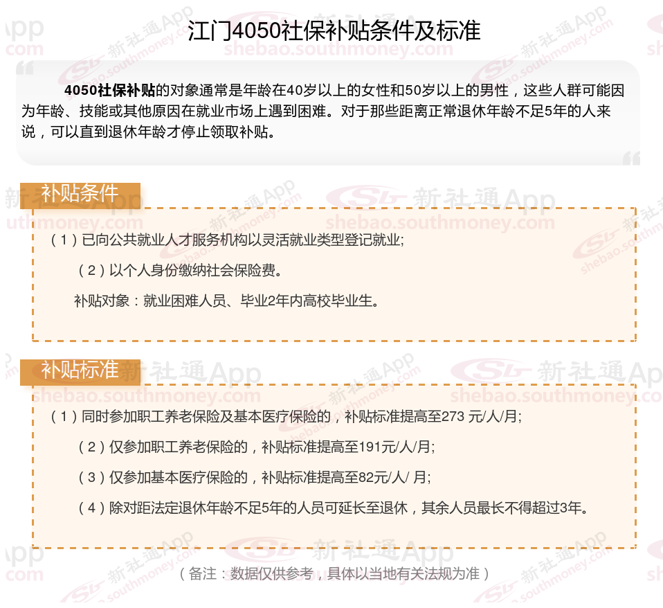 二、江门4050社保补贴标准及条件4050社保补贴,最新如下