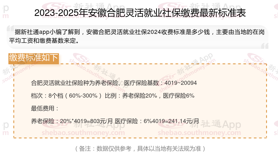 一、2025年安徽合肥灵活就业社保缴费标准公布啦 安徽合肥灵活就业社保多少钱一个月?