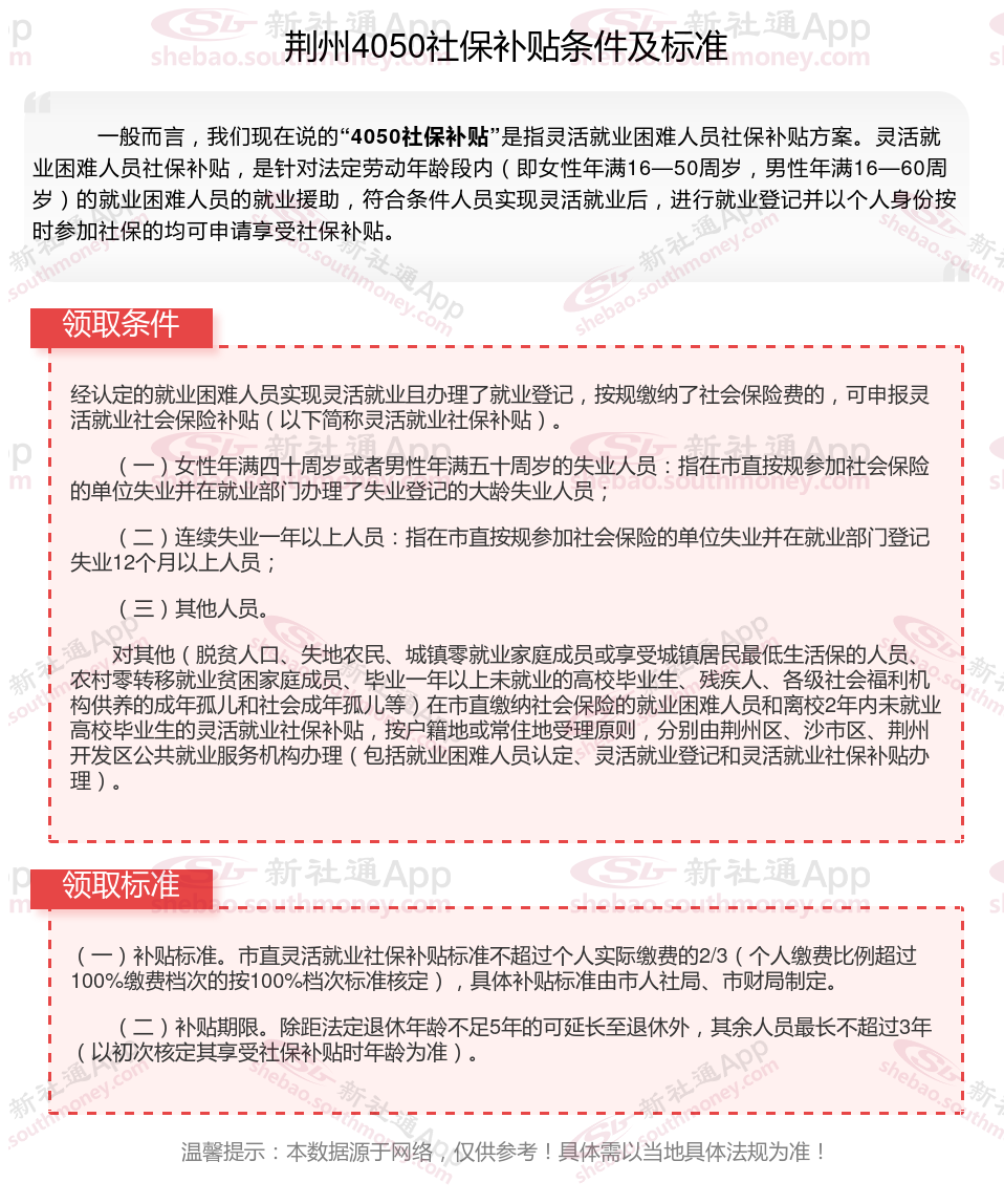 二、荆州4050社保补贴标准及条件2025年最新消息