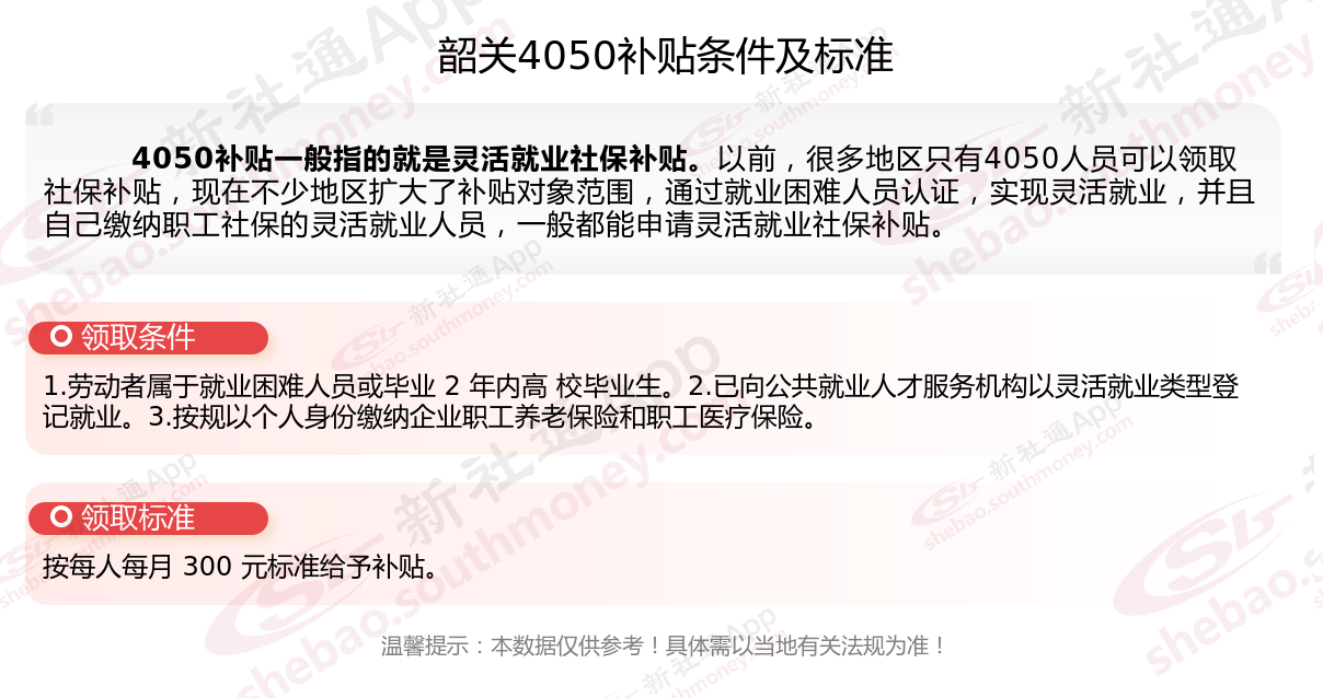 以上就是韶关4050灵活就业社保补贴的相关内容,欢迎关注新社通/下载新社通APP了解更多五险一金专业资讯。