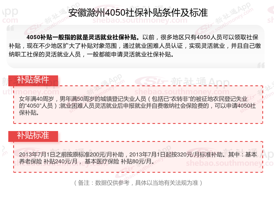 一、2025年安徽滁州灵活就业4050社保补贴标准和条件是什么