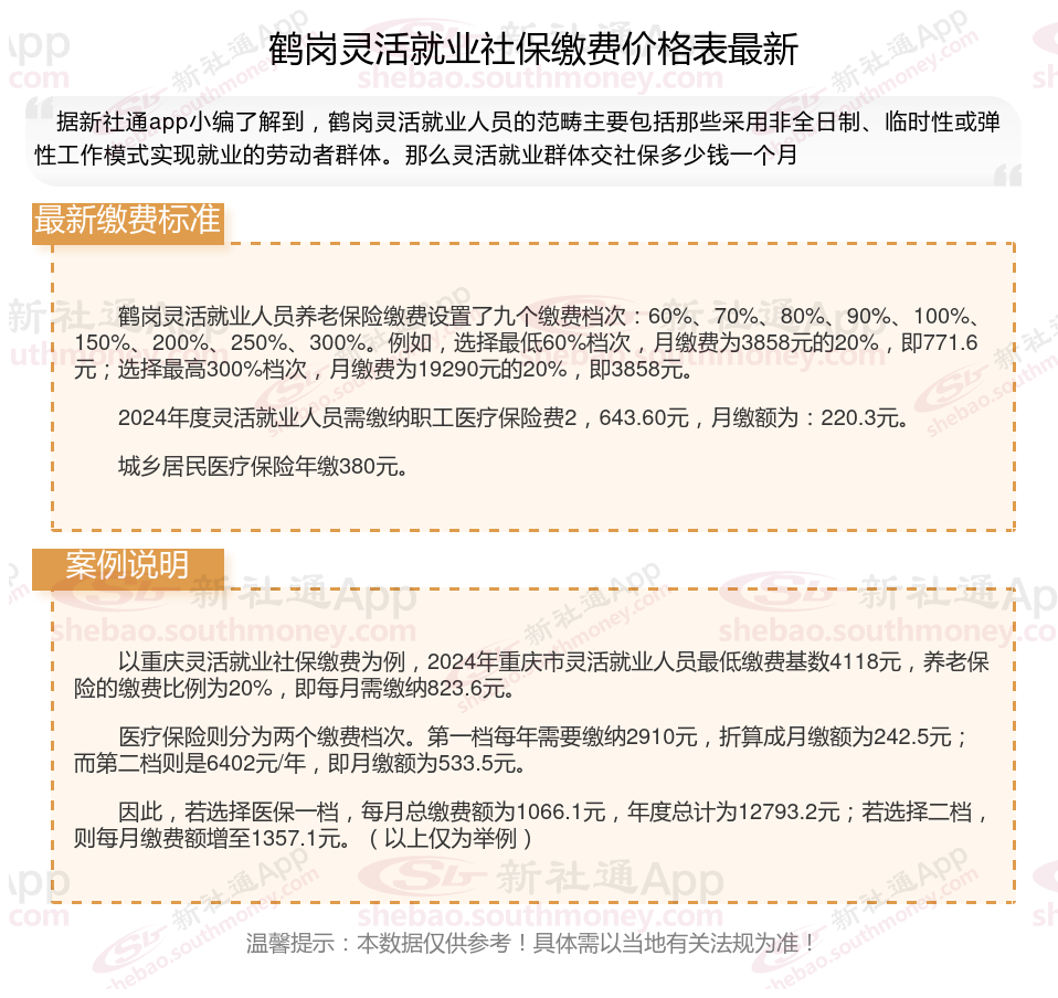 据新社通app数据显示,鹤岗灵活就业人员养老保险缴费基数2024-2025年最新标准如下: