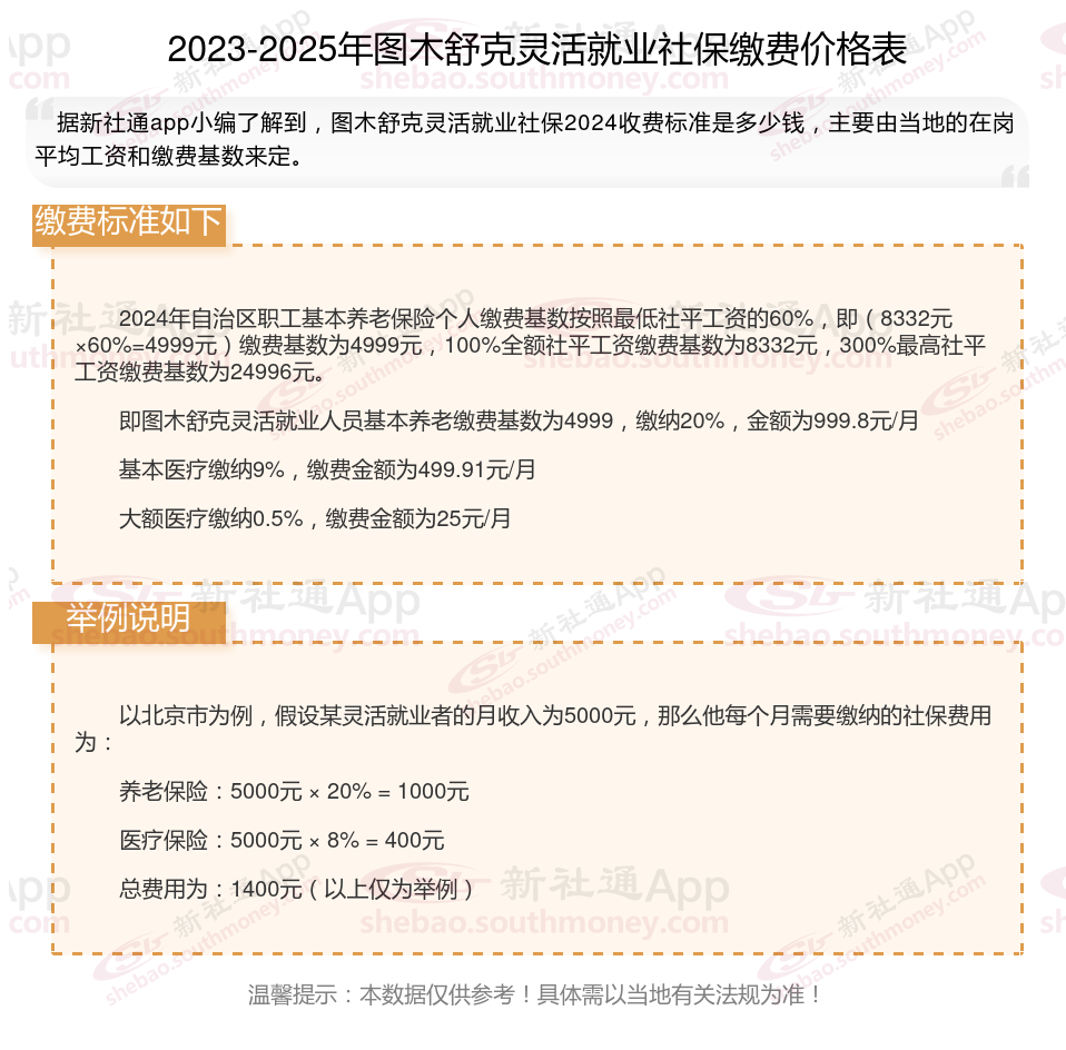 图木舒克灵活就业人员基本养老保险缴费基数暂按不低于4999元;