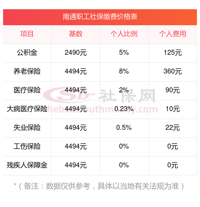 南通2025年养老保险缴费标准是多少?下表是2025年南通社保费用明细参考,新社通app-社保缴费查询工具提供的最新数据如下: