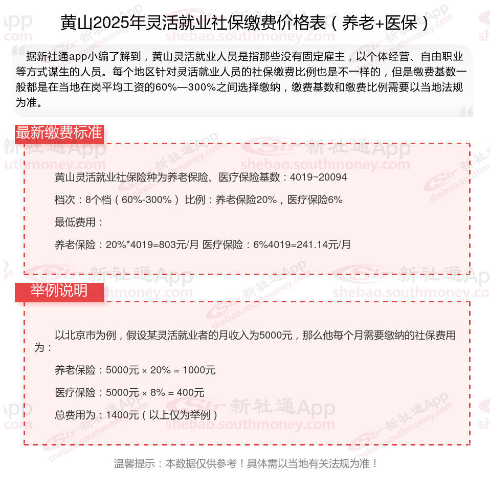 2025年黄山灵活就业人员社保交多少钱,你了解2025年黄山灵活就业人员社保缴费基数及比例吗,据新社通小编了解到,灵活就业社保缴费标准每年都会有所调整,主要体现在缴费基数和缴费比例上。接下来随新社通APP小编一起来看看。