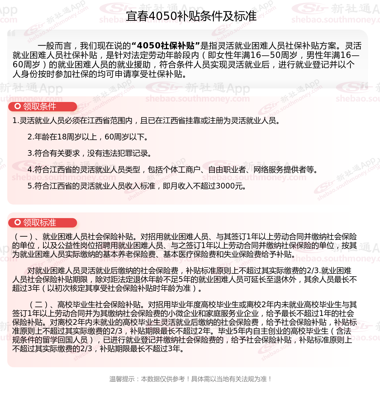 一、2025年宜春4050社保补贴标准是怎么样的,附领取条件
