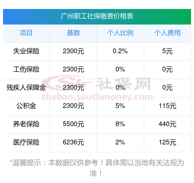 2025年广州社保缴费多少钱?下表是2024-2025年广州社保费用明细参考,新社通app-社保缴费查询工具提供的最新数据如下: