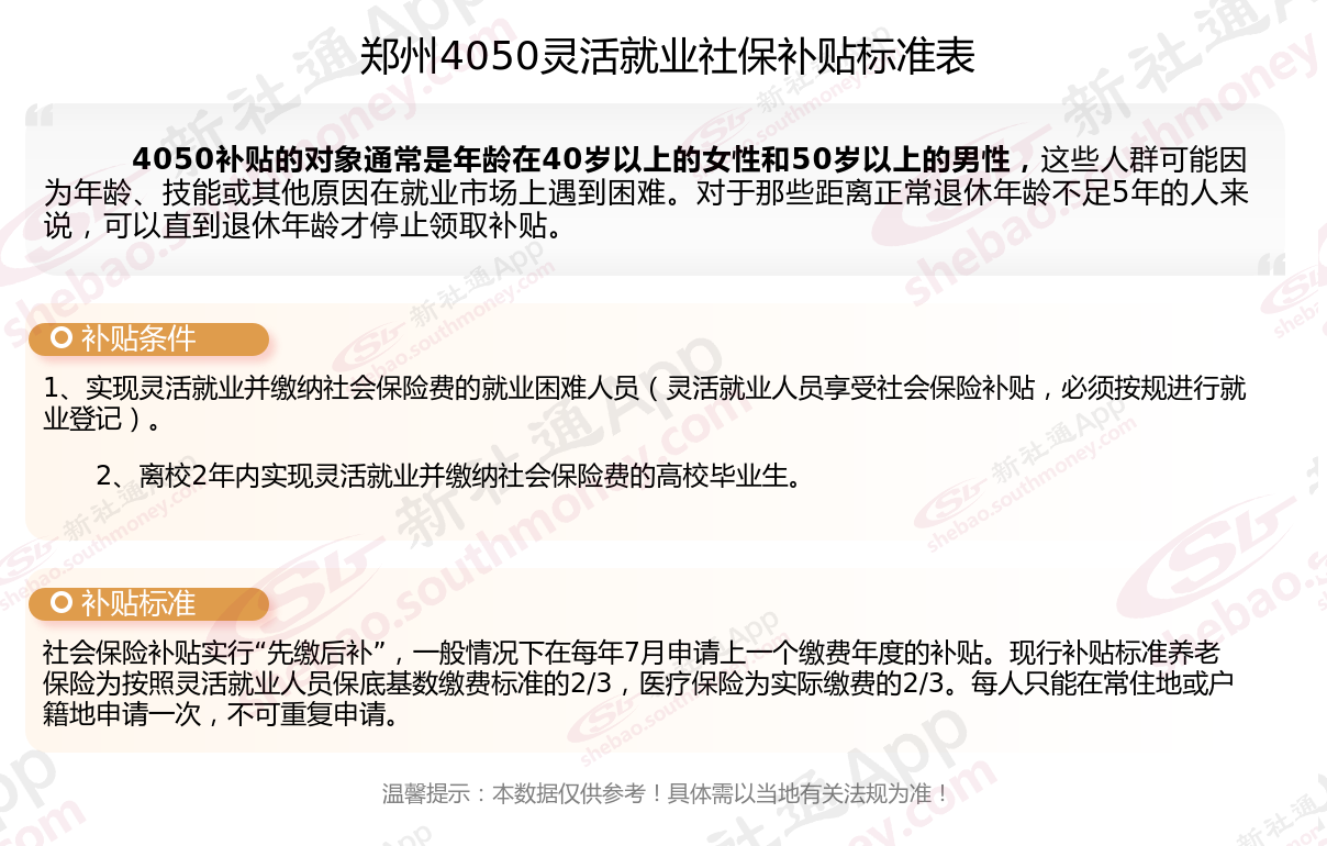 二、2025年郑州灵活就业4050社保补贴标准及条件是什么?来了解一下