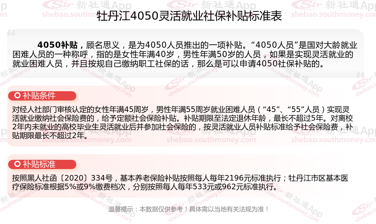 以上就是牡丹江4050灵活就业社保补贴的相关内容,欢迎关注新社通/下载新社通APP了解更多五险一金专业资讯。