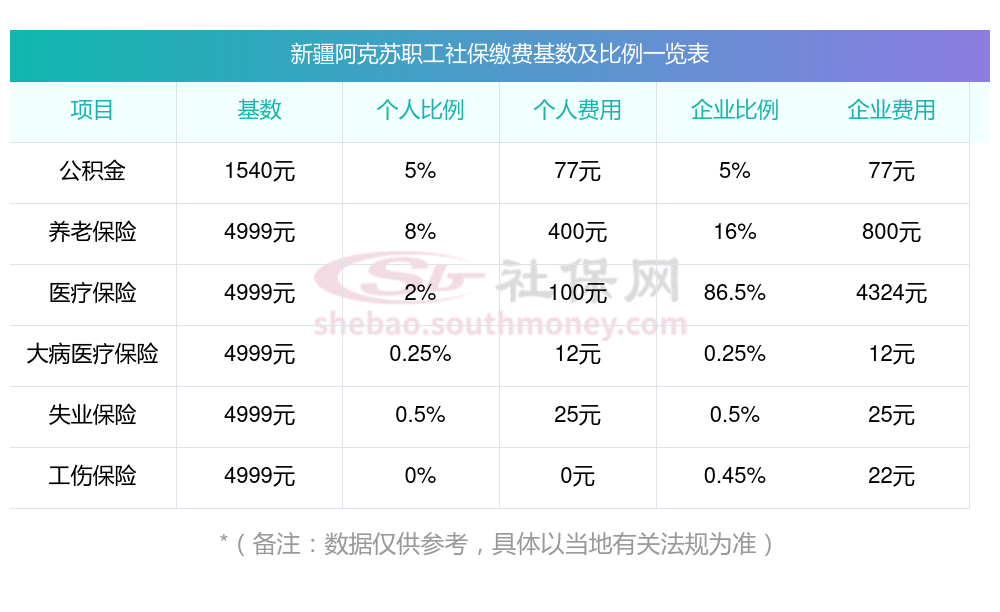 新疆阿克苏社保缴纳比例公司和个人按照以下方式计算?: