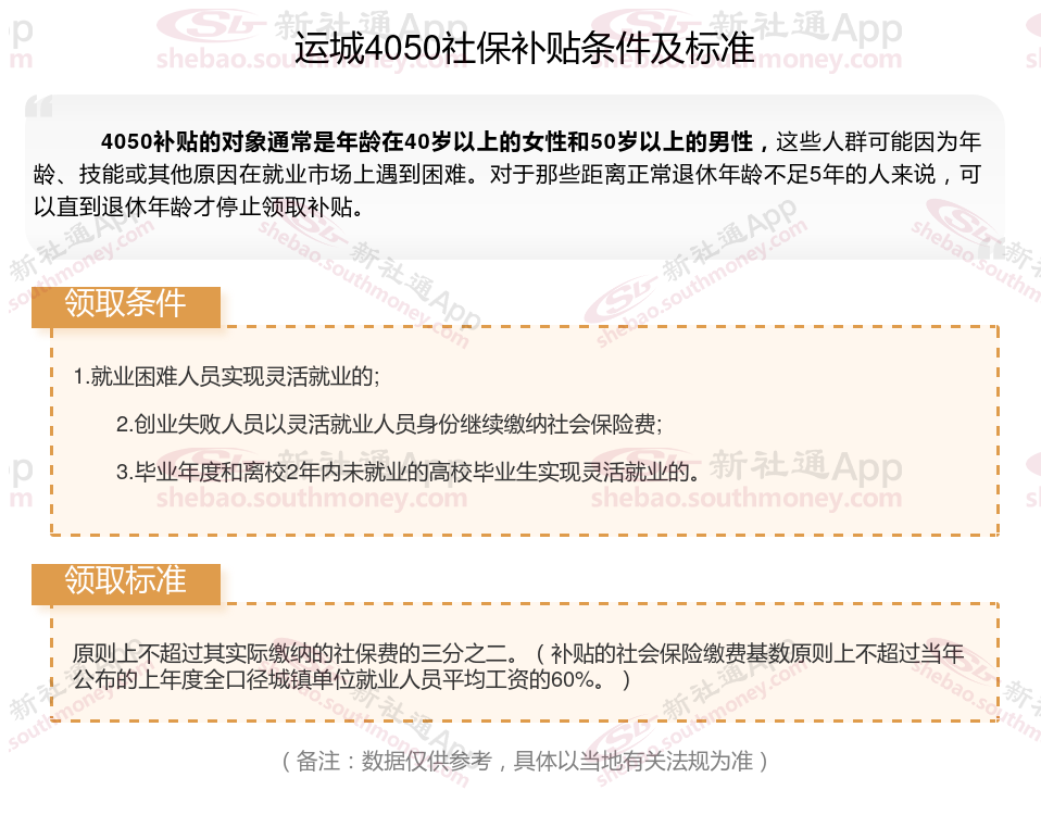 二、2025年运城4050社保补贴标准及条件,最新如下: