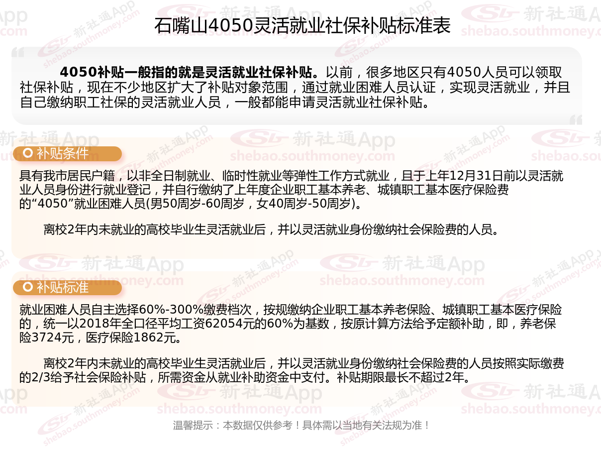 二、石嘴山4050社保补贴标准及条件4050社保补贴,最新如下