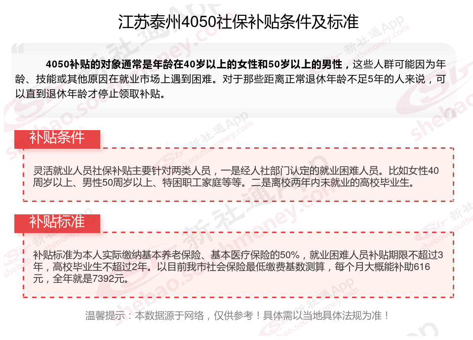一、2025年江苏泰州4050社保补贴标准及条件来了