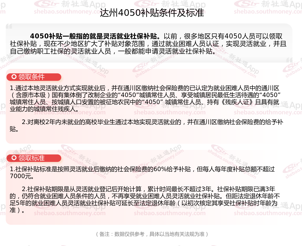 以上就是达州4050灵活就业社保补贴的相关内容,欢迎关注新社通/下载新社通APP了解更多五险一金专业资讯。