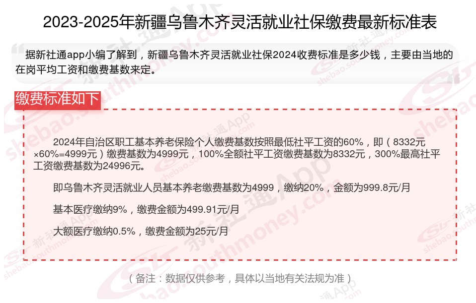 一、新疆乌鲁木齐灵活就业社保缴费基数及比例最新消息