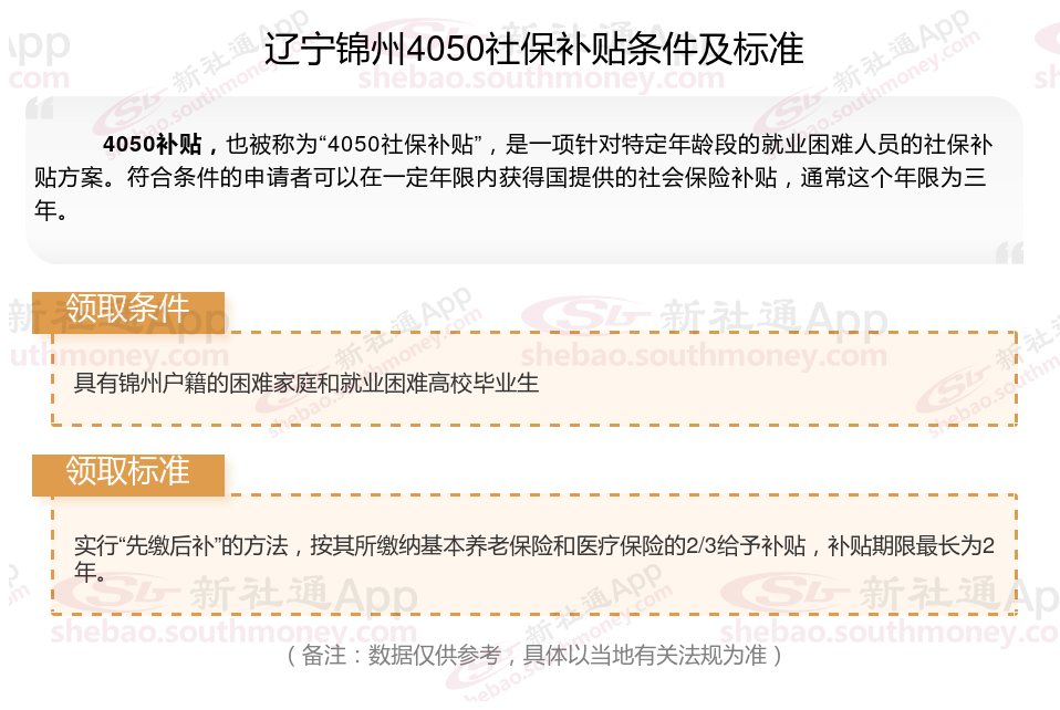 二、2025年辽宁锦州4050社保补贴标准及条件,最新如下: