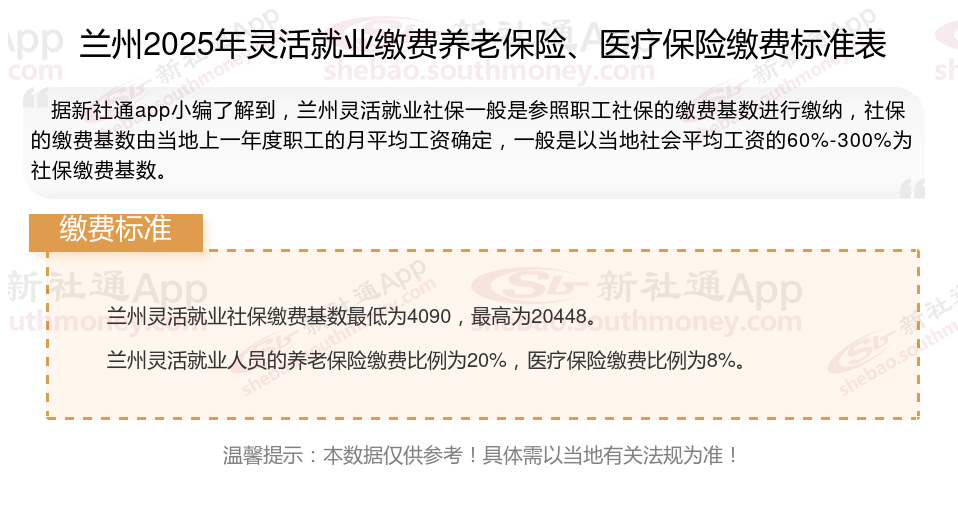 二、兰州2025年灵活就业社保缴费基数及比例最新消息