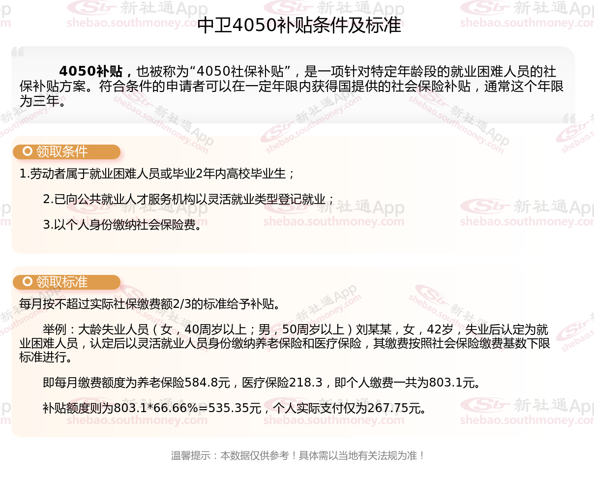 一、中卫灵活就业人员领4050补贴能领到多少钱,补贴补多少呢?(中卫4050社保补贴标准2025)